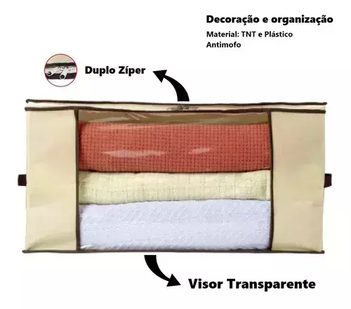 Organizador Multiuso para Closet e Armários com visor transparente, que facilita a visualização do interior Ideal para manter as roupas de cama e toalhas sempre protegidas e prontas para uso É uma das melhores maneiras de ganhar muito mais espaço e ter um guarda-roupa sempre impecável Indispensável para guardar de forma organizada edredon, roupas de lã, cachecol, luvas, gorros, etc, Guarde roupas de outra estação, vestido de noiva, roupas de bebê, travesseiros, etc. Acomoda facilmente embaixo da cama